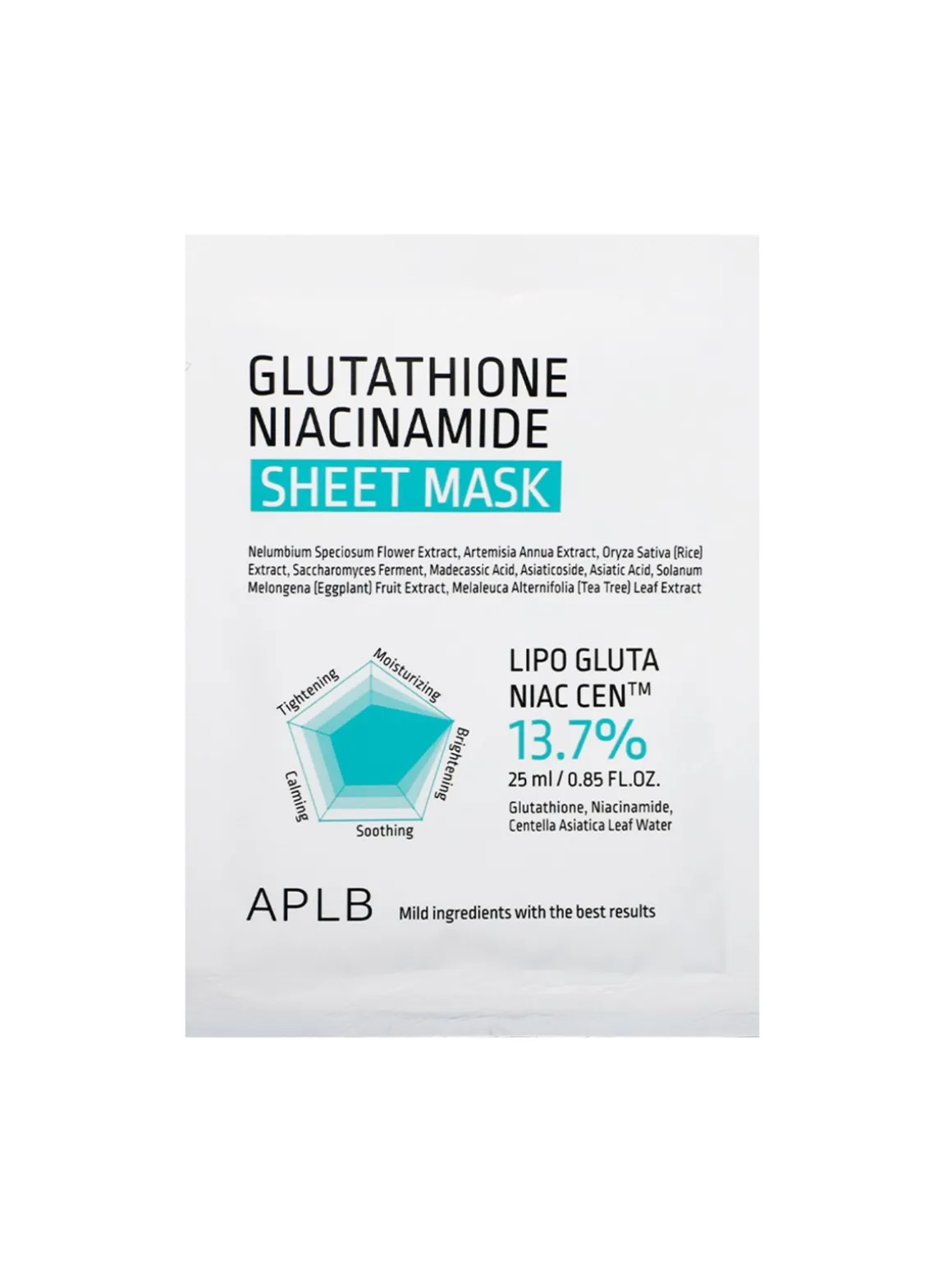 Mascarilla de celulosa ultrafina con glutatión, niacinamida y centella asiática que ilumina, calma e hidrata intensamente la piel cansada y apagada.
